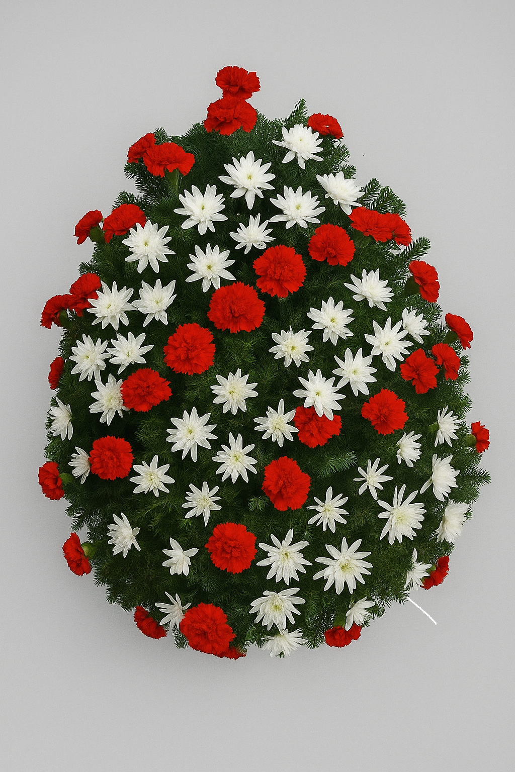 Coroană Funerară cu Crizanteme Albe și Garoafe Roșii A3 -